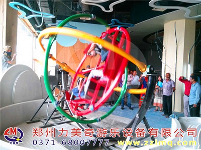 三维太空环是由训练飞行员和宇航员的模拟装置演变而来的新型游乐设备。游客在其中360度任意旋转,速度时快时慢,使你体会到三维空间自由旋转的特殊感受,放松全身肌肉,既锻炼身体又趣味无穷,快来感受一下宇航员们的训练吧?它是一项勇敢者的运动,也是绝无危险的运动,自由的三维旋转加上绚丽多彩的外型,令人迷恋不己。