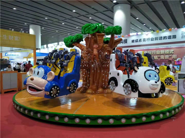 由六个动物造型座舱组成,乘客坐在里面有两道带固定,开始运行时座舱左右各